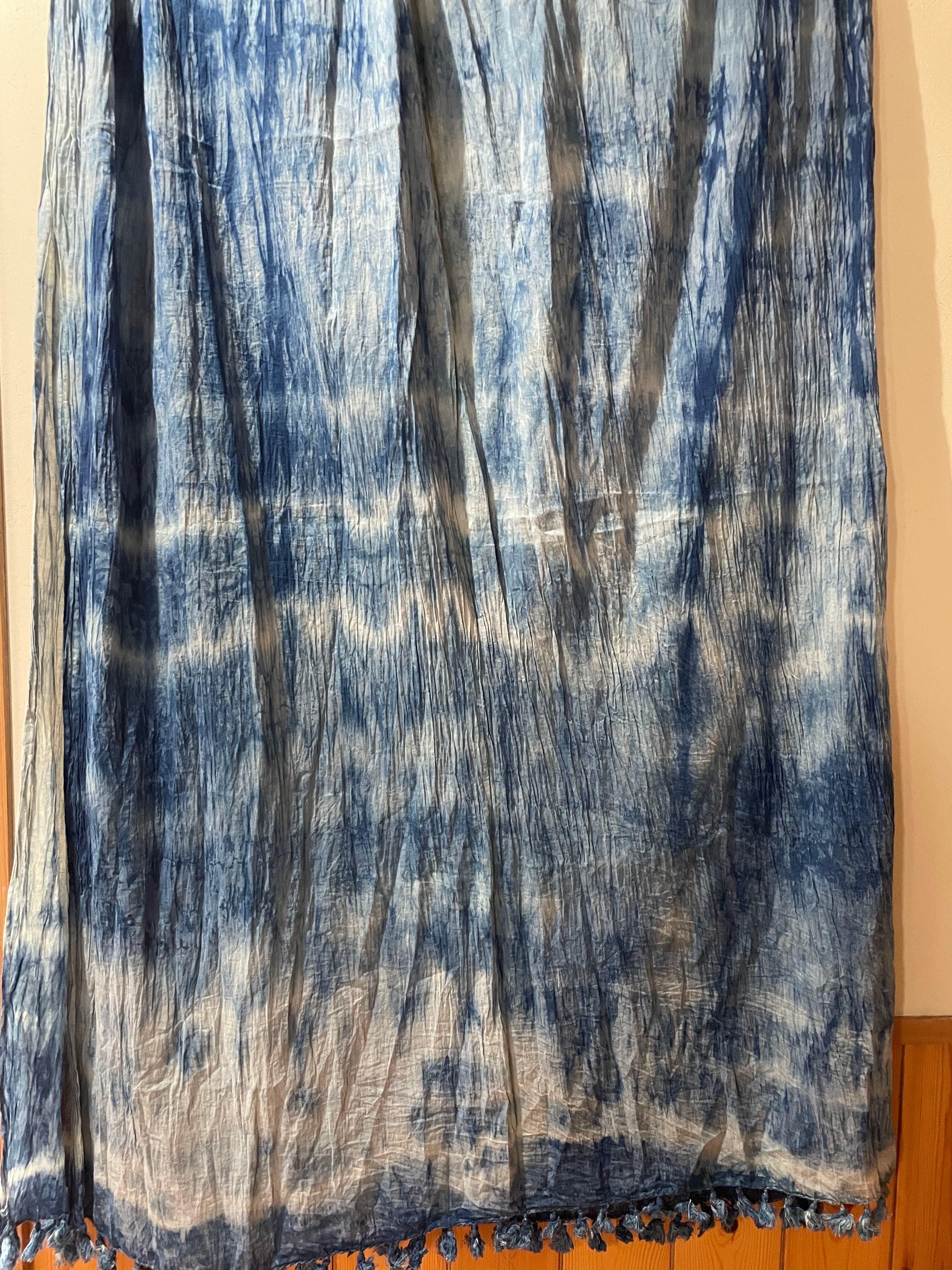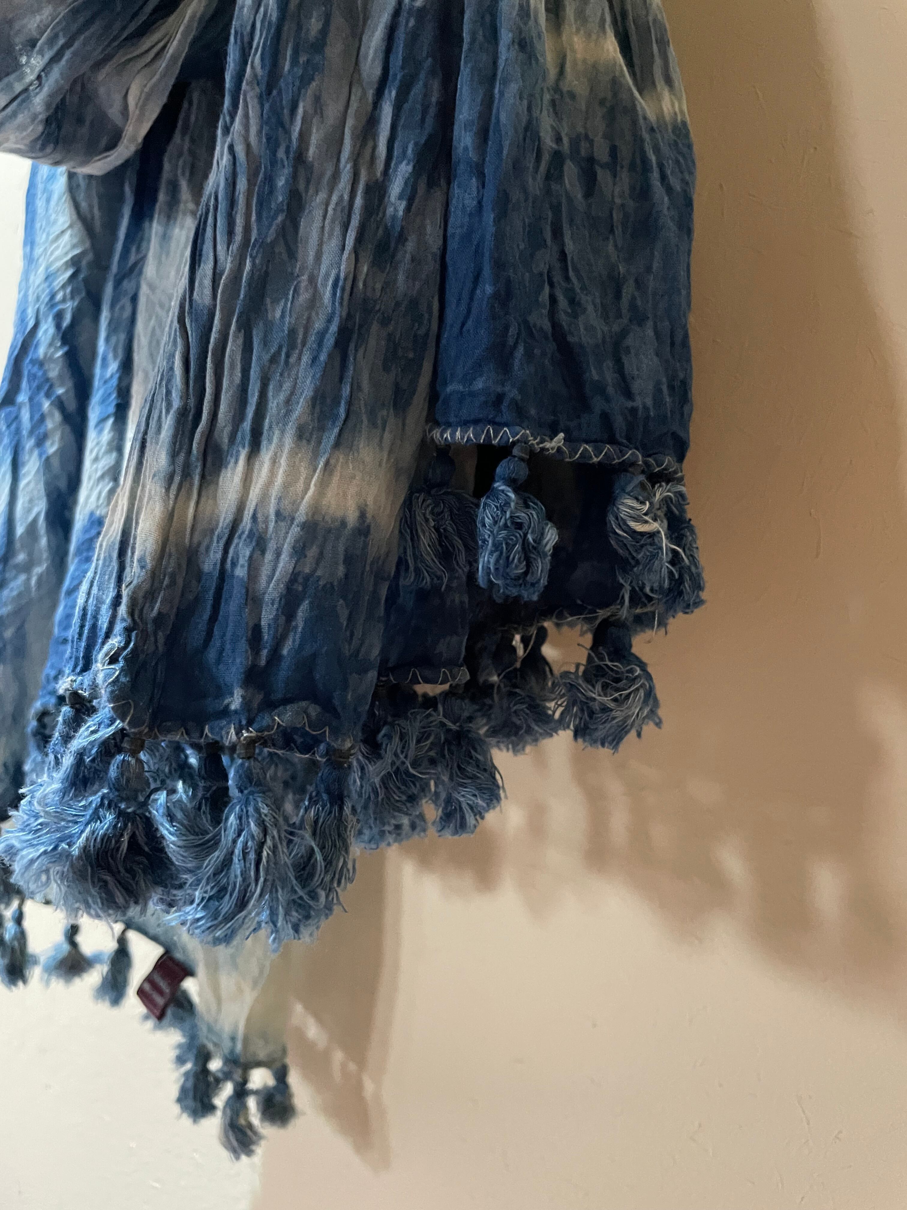 藍染 大判コットンストール シワ加工 ねじり染 特大サイズ Fabindia