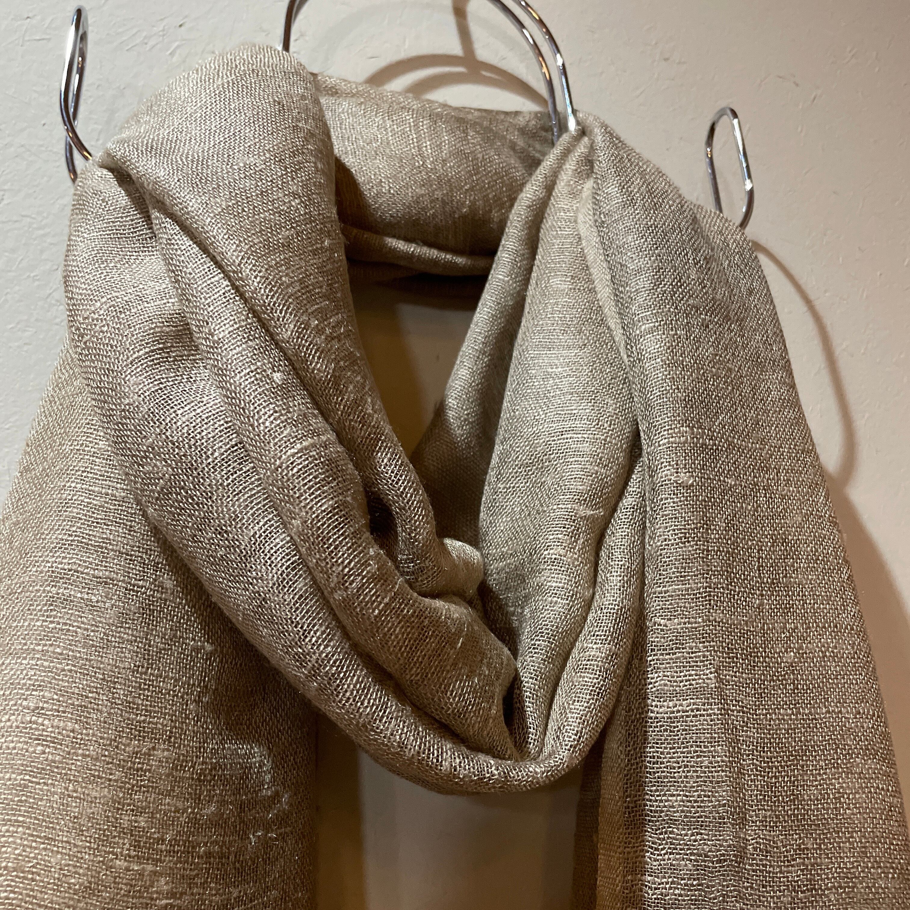 よもぎ染 シルクストール シルク100% ベージュ 手織りストール
