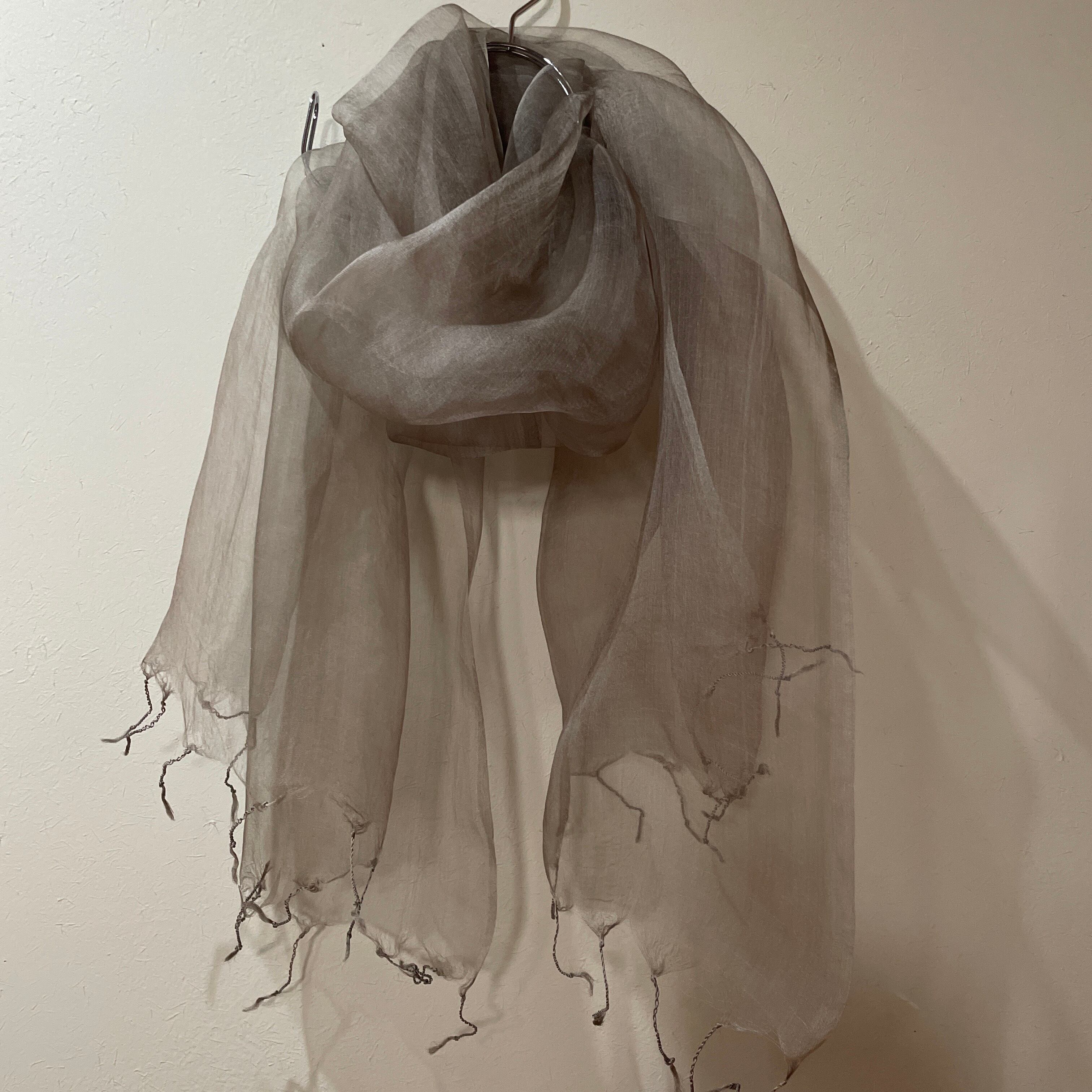 春のセイタカアワダチソウ染め シルクオーガンジーストール[柳鼠色]