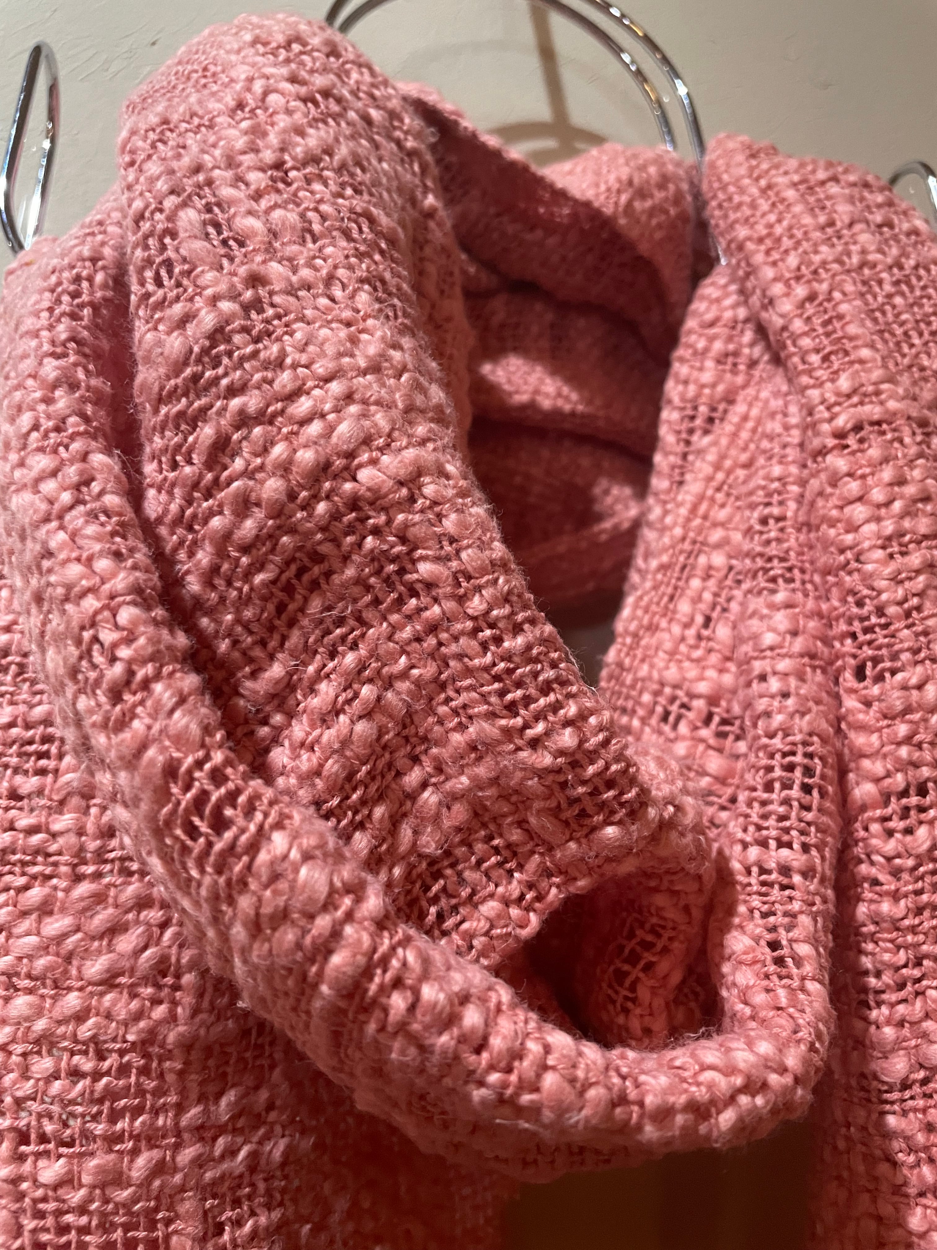 茜染 スラブコットンストール 薄紅 手織りストール オーガニック綿100%