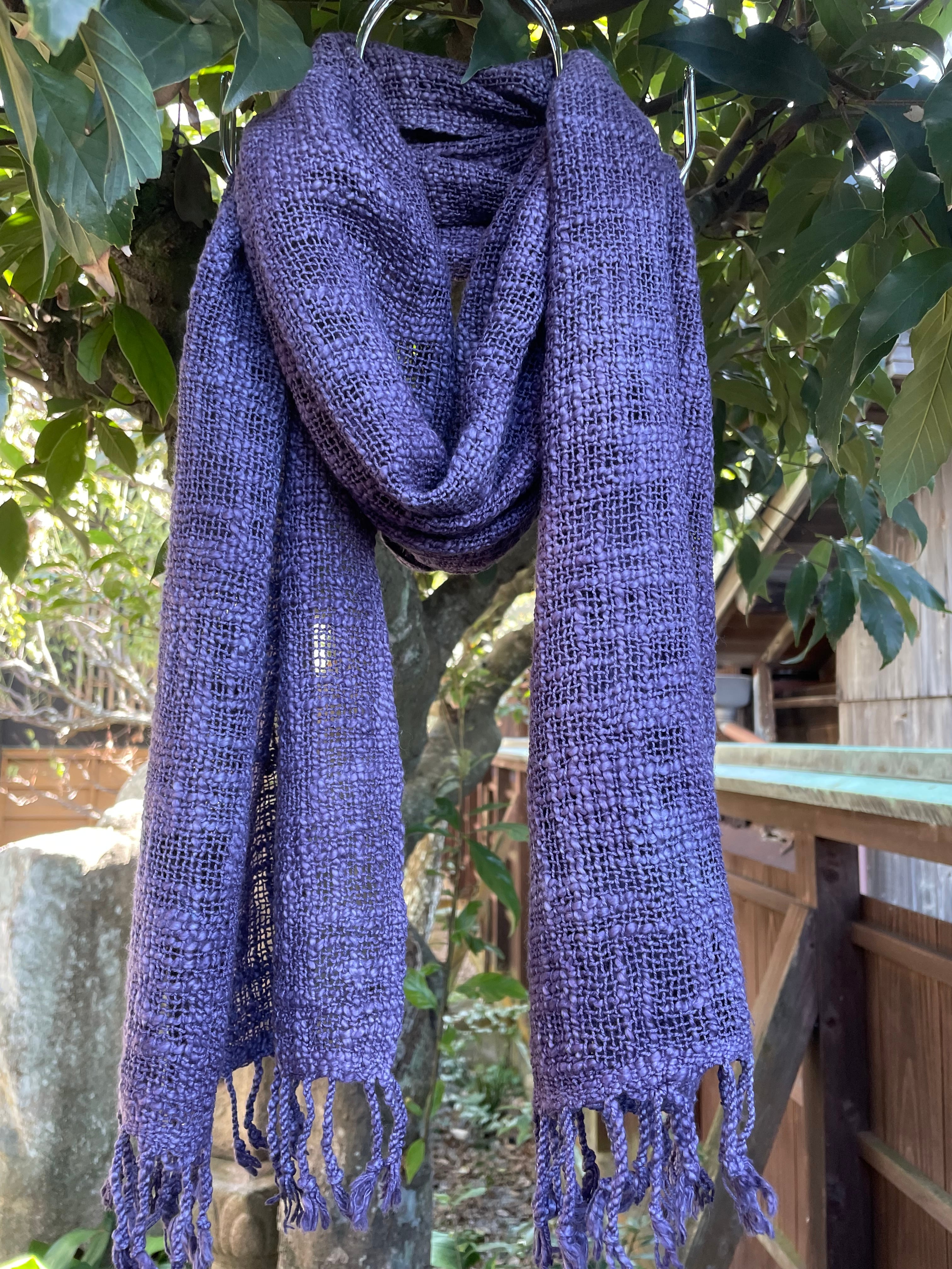 紫染 スラブコットンストール 江戸紫 オーガニック綿100% 手織り 天然染料