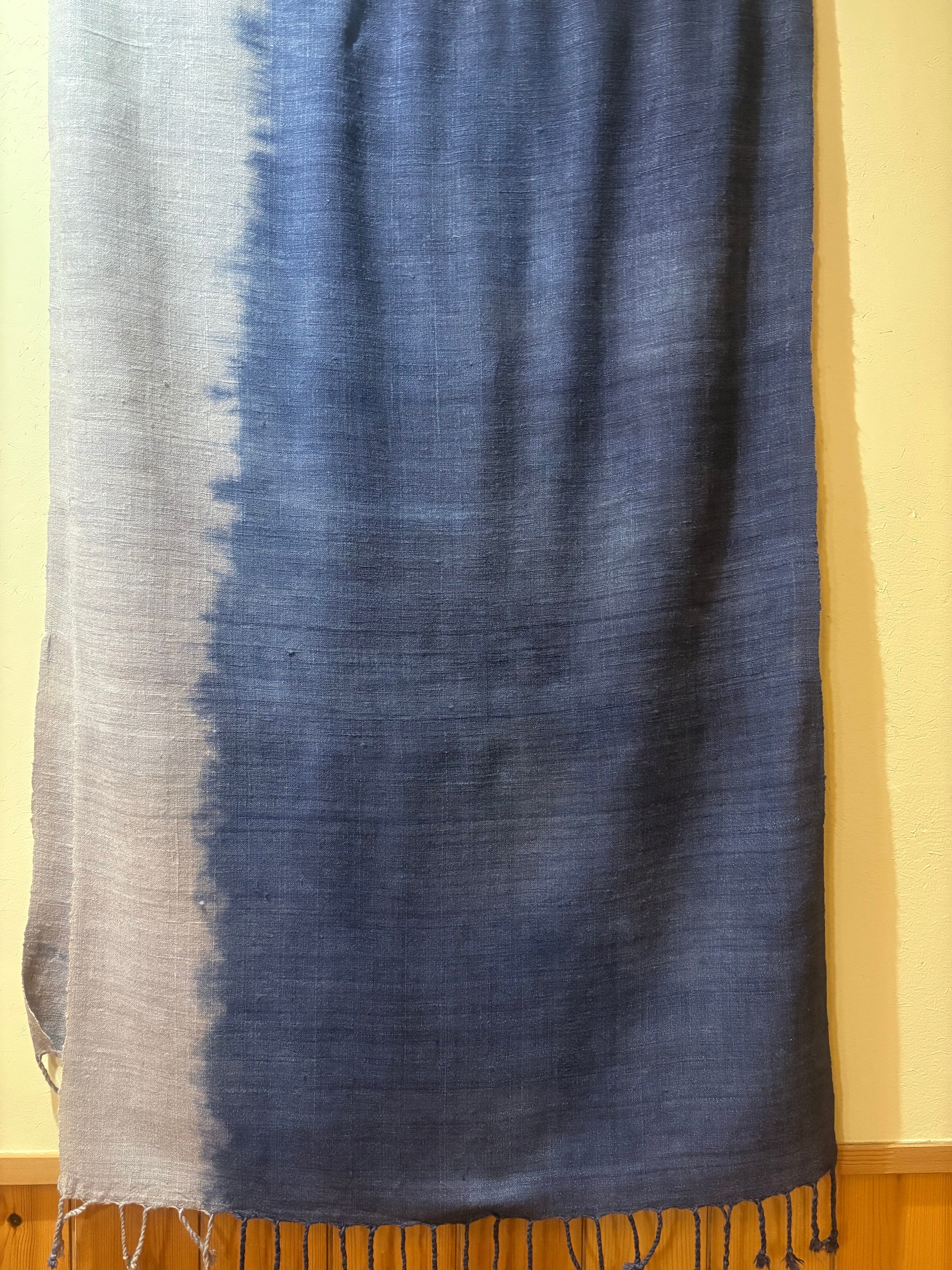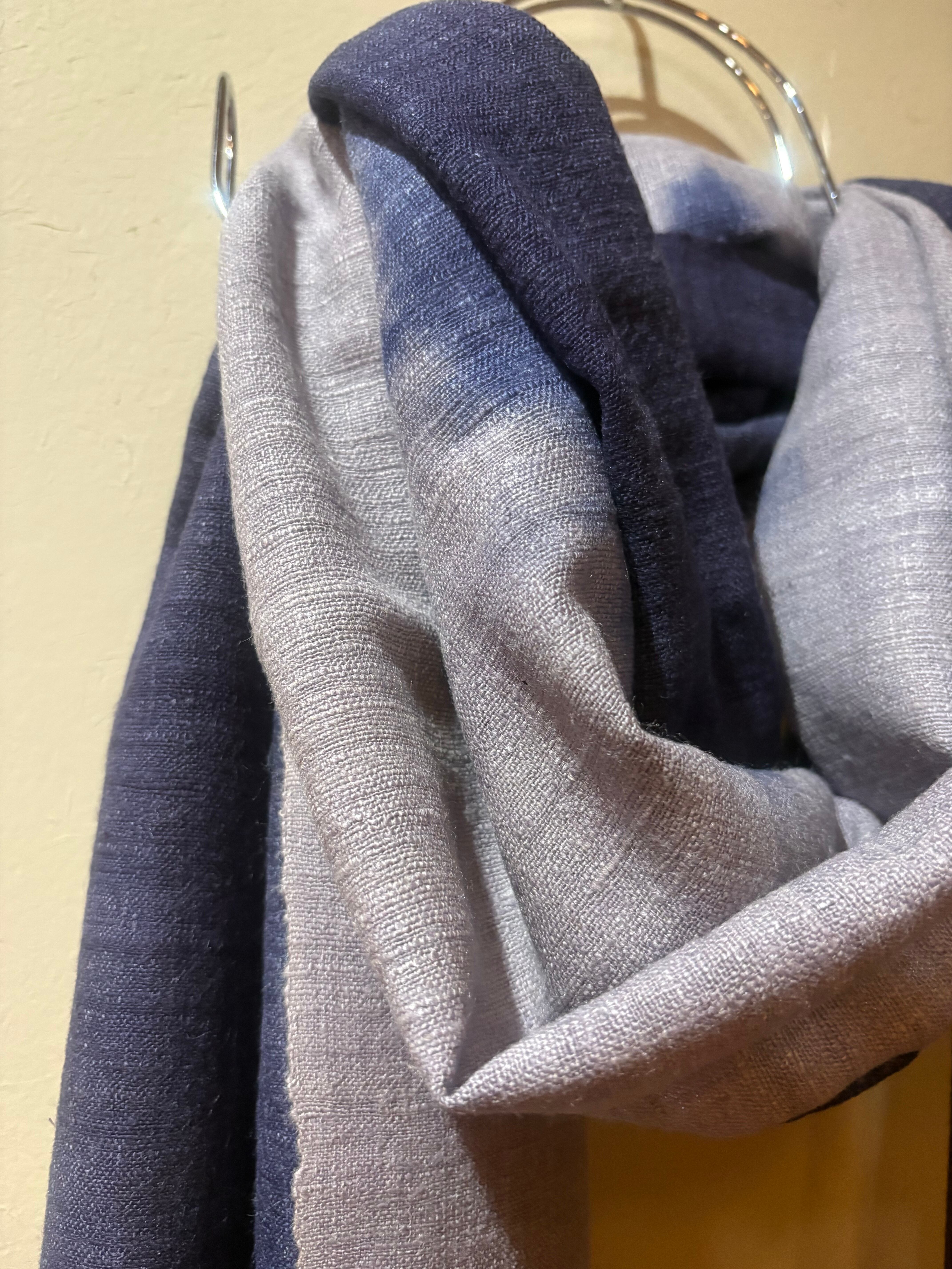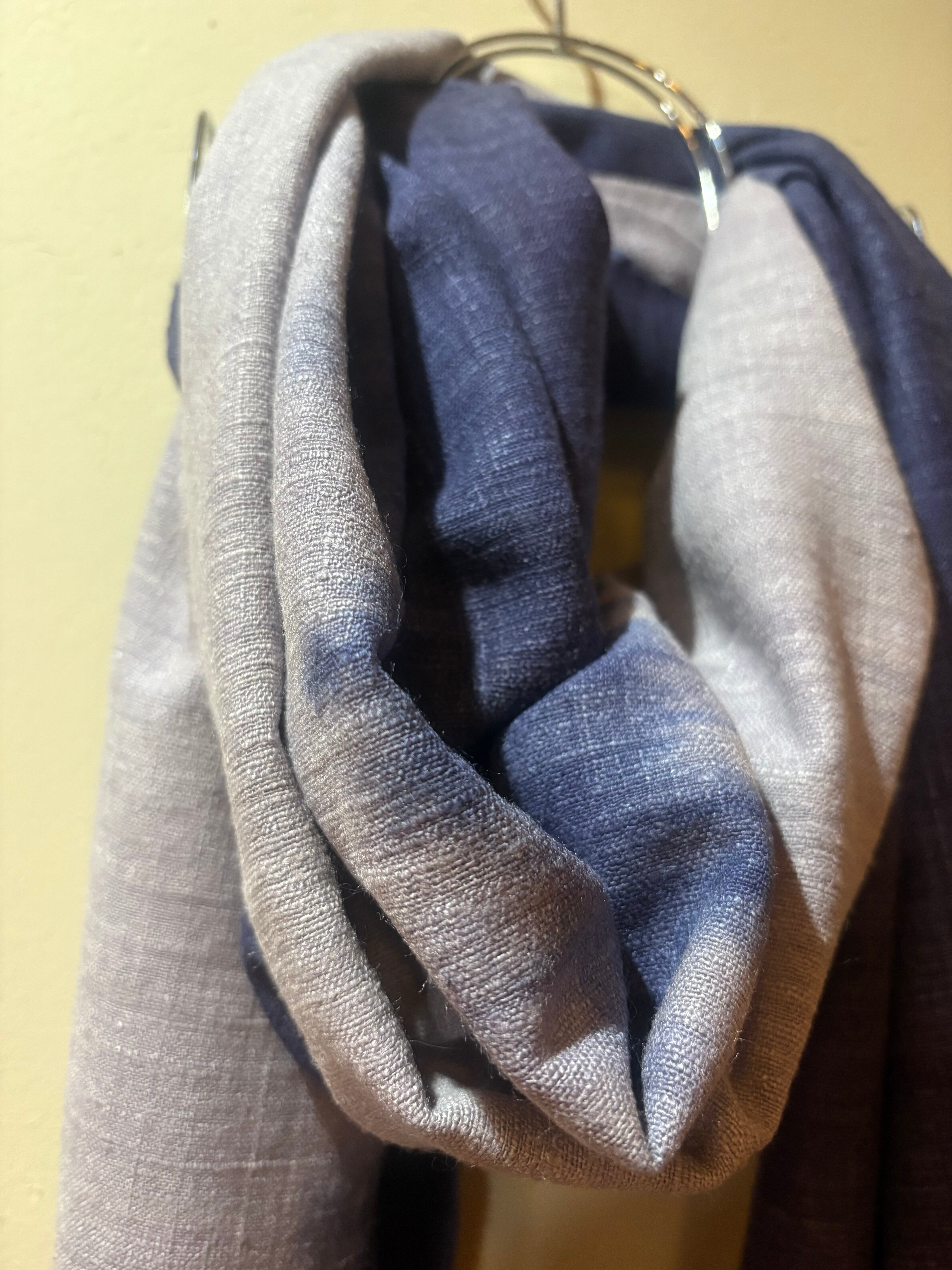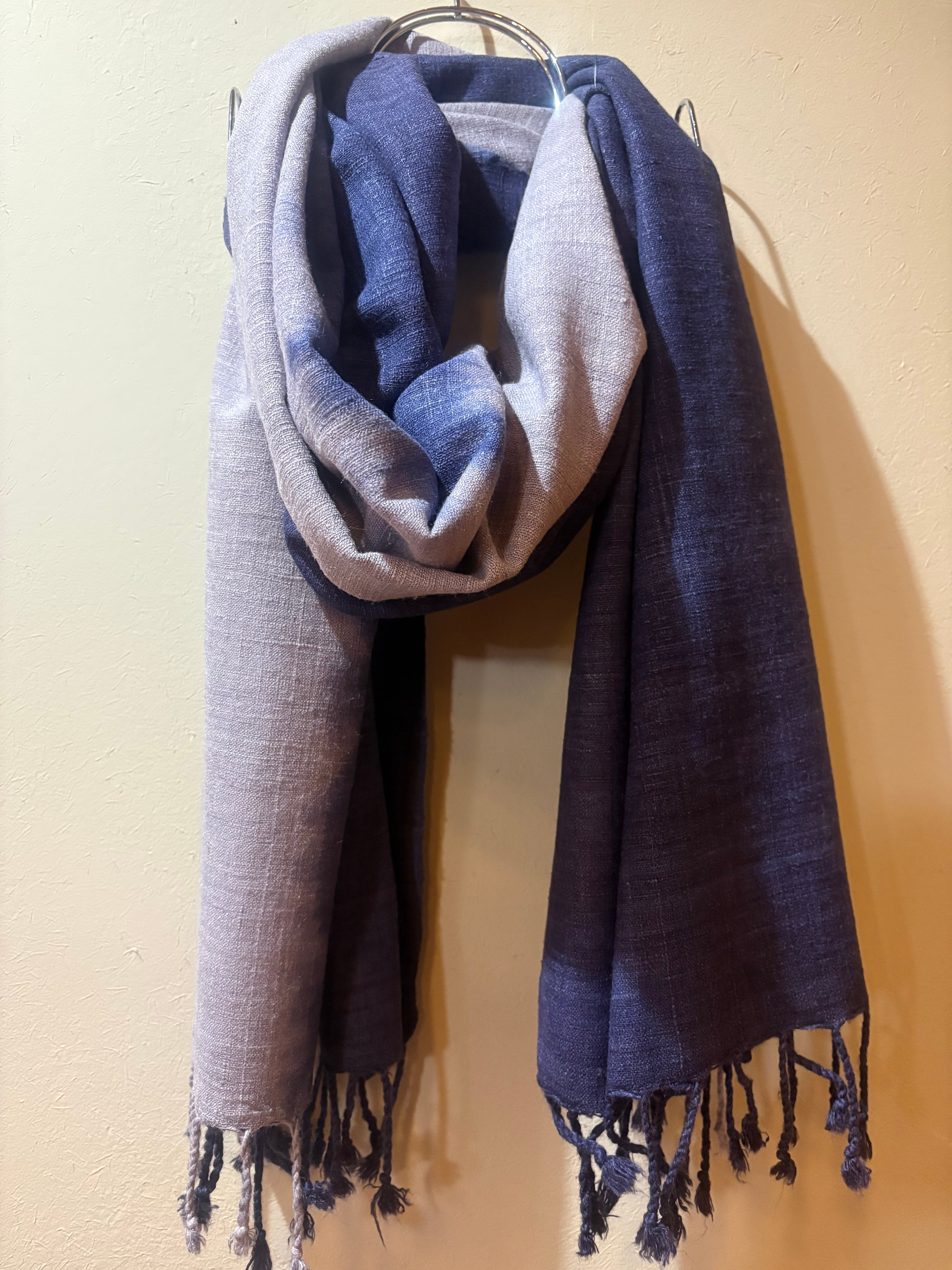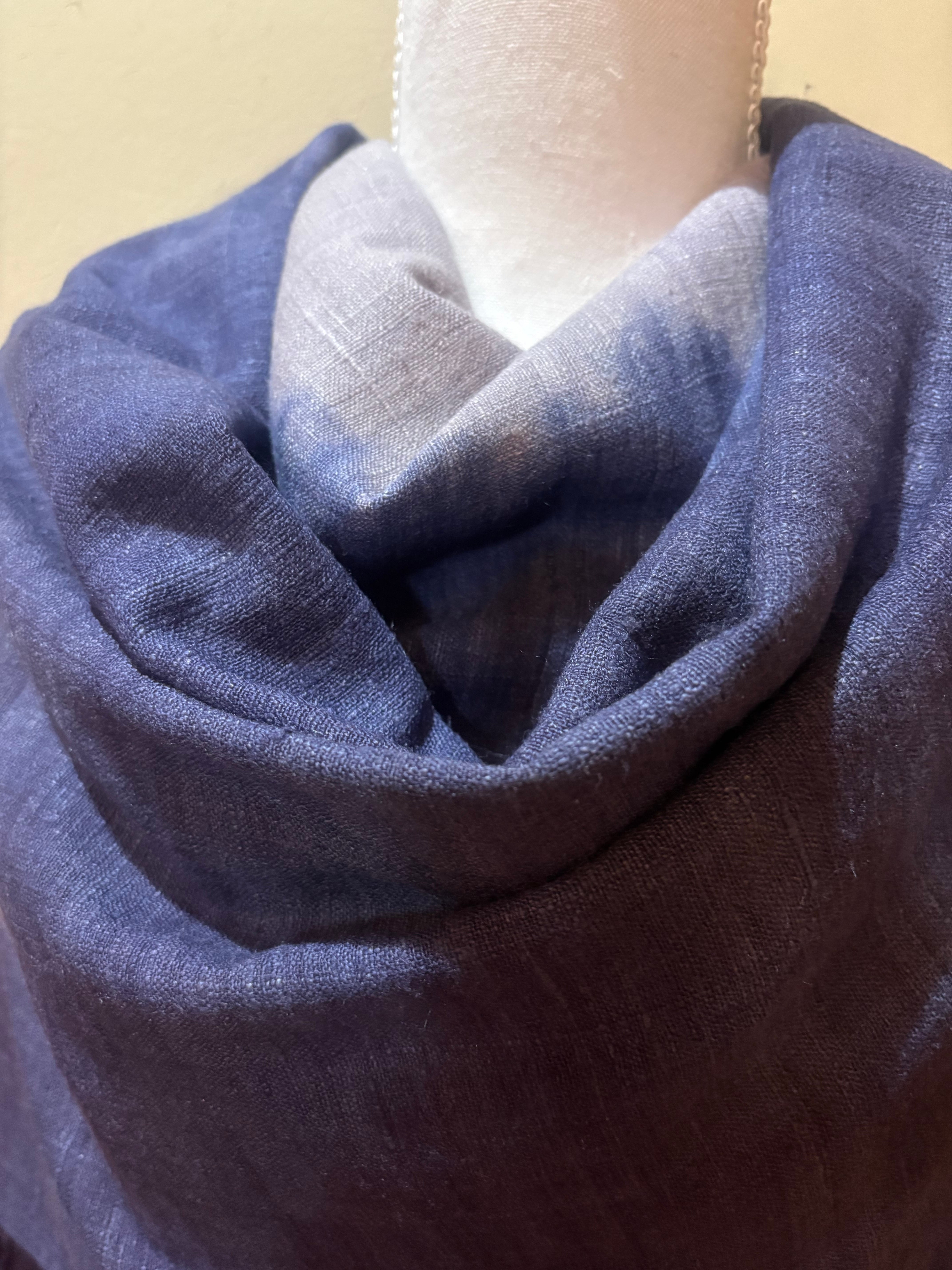 ロッグウッド染 エリ蚕シルクストール 紫紺&紫苑色 アヒンサーシルク100% ツートンカラー 天然染料