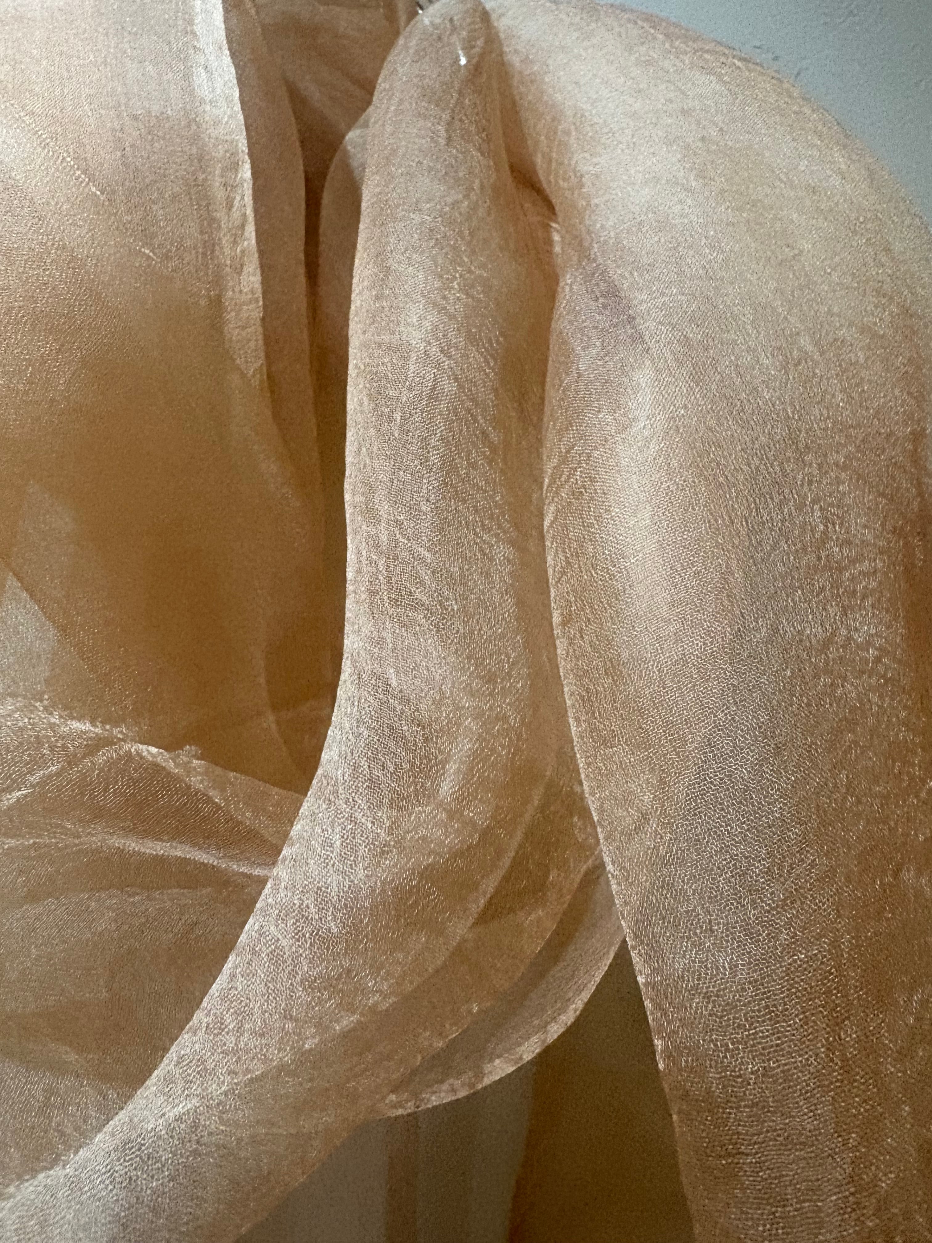 その儚くも尊い色を、光を浴びてキラキラと輝く、シルクオーガンジーに染め上げました