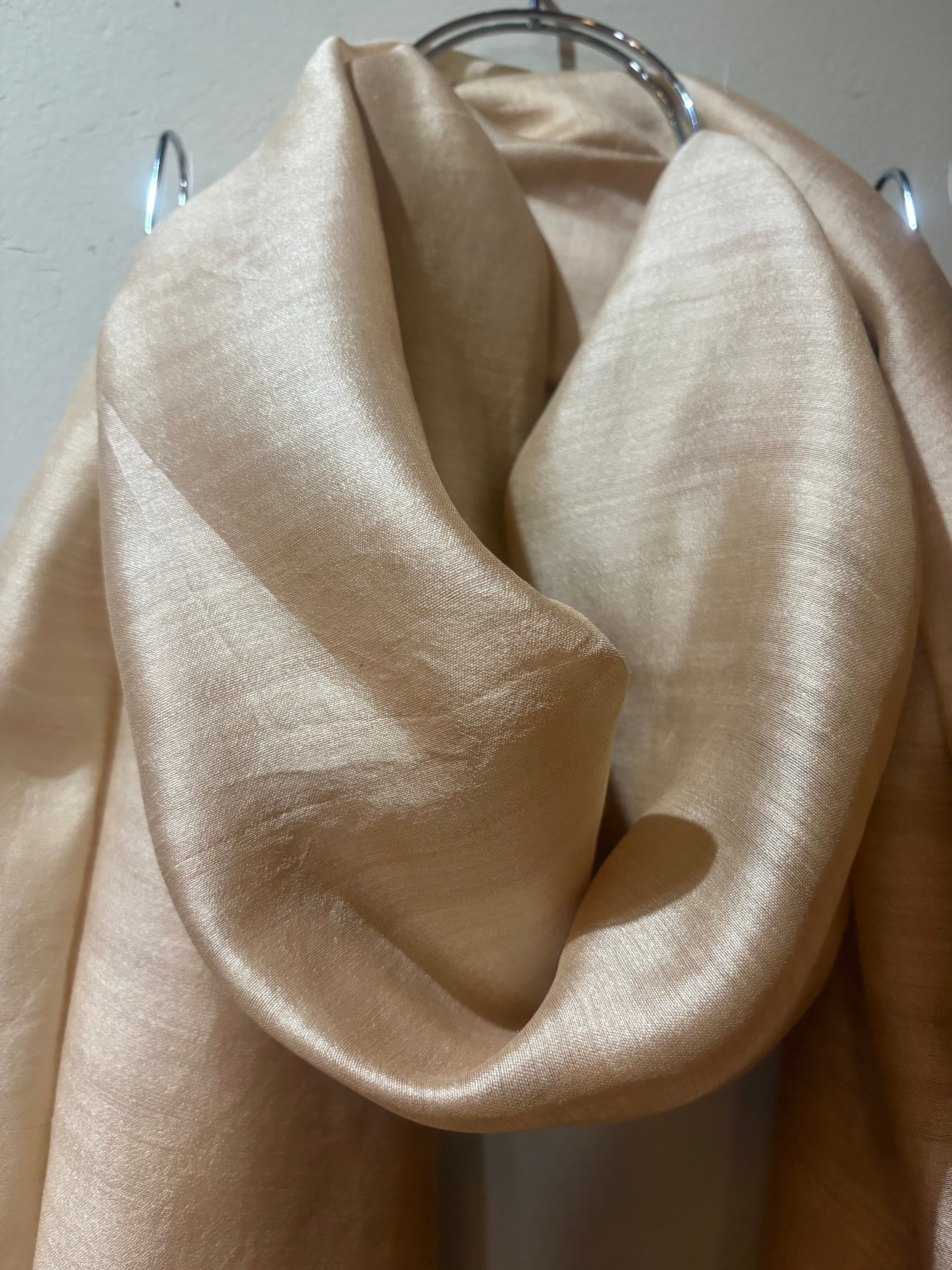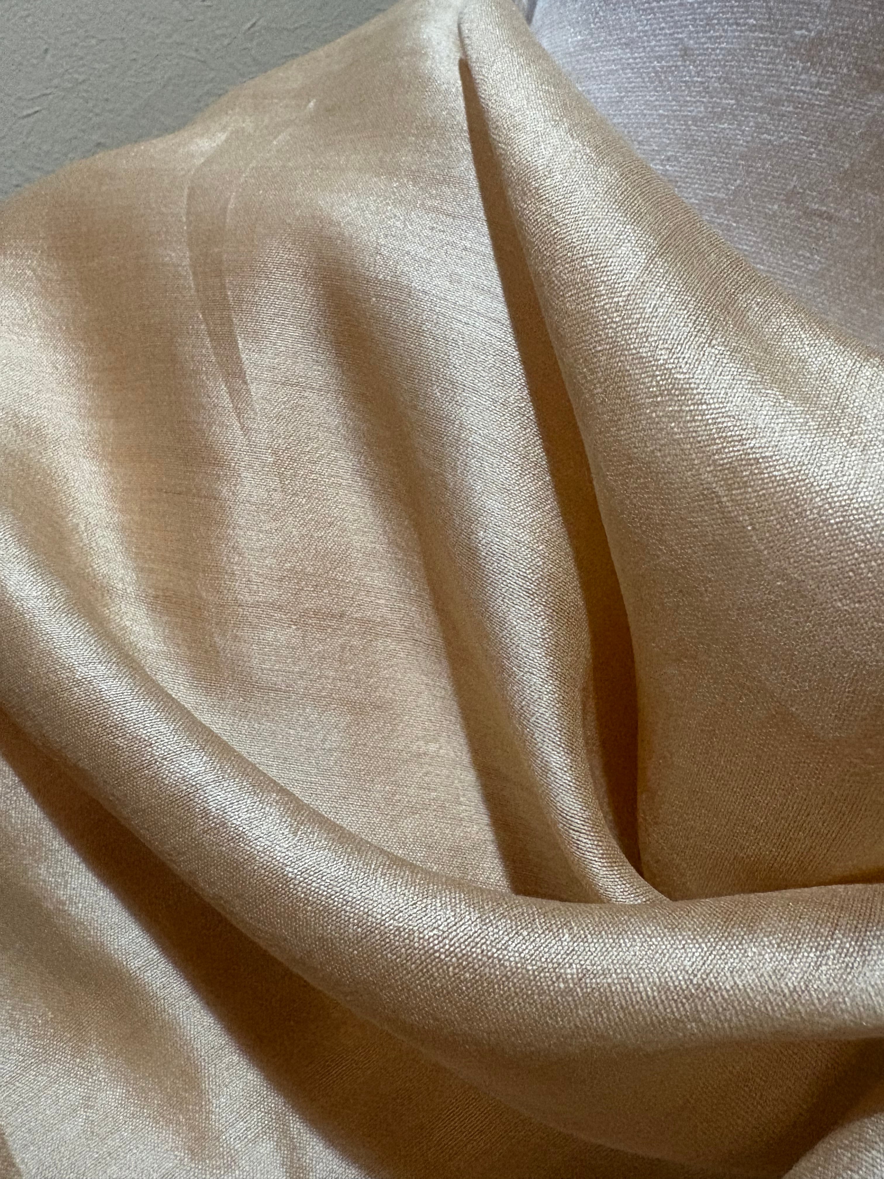 肌にしっとりと馴染むシルクのぬくもりとともに、自然の恵みと命の循環を感じるストールです