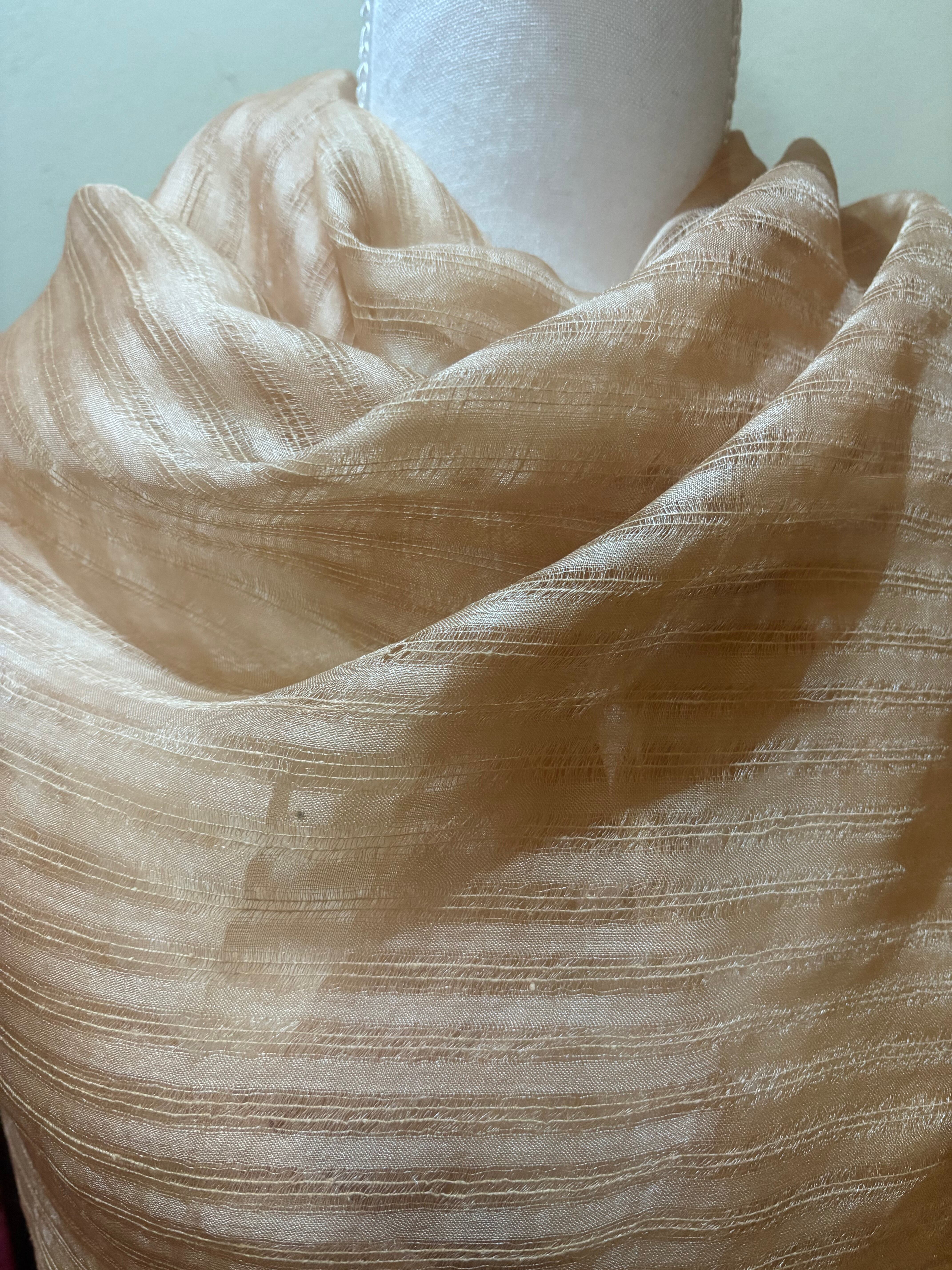 桜染 タッサーシルクオーガンジーストール 洗柿 野蚕