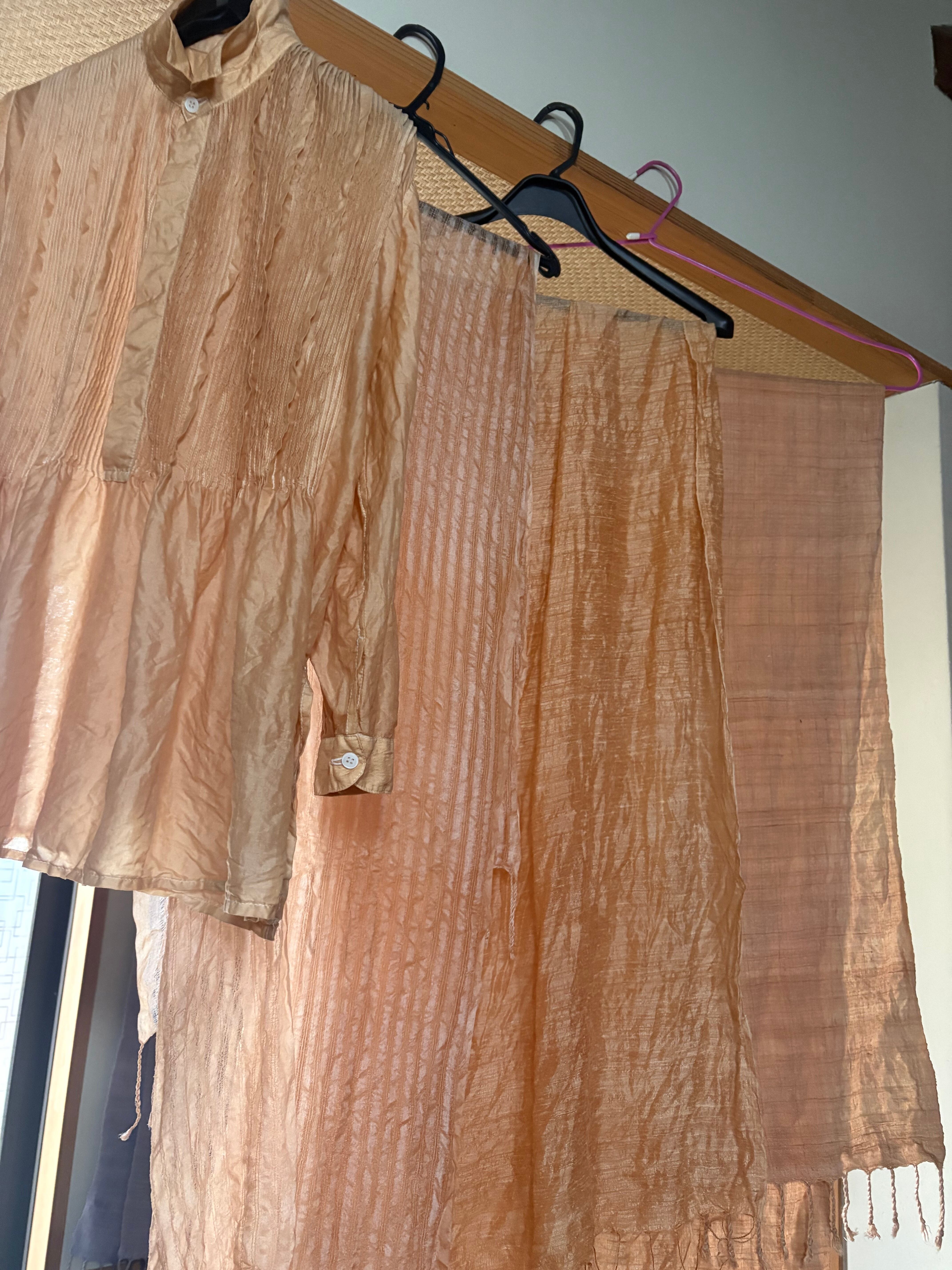 タッサーシルクでこのお色に染まったものは、今回一点限りのご紹介となります