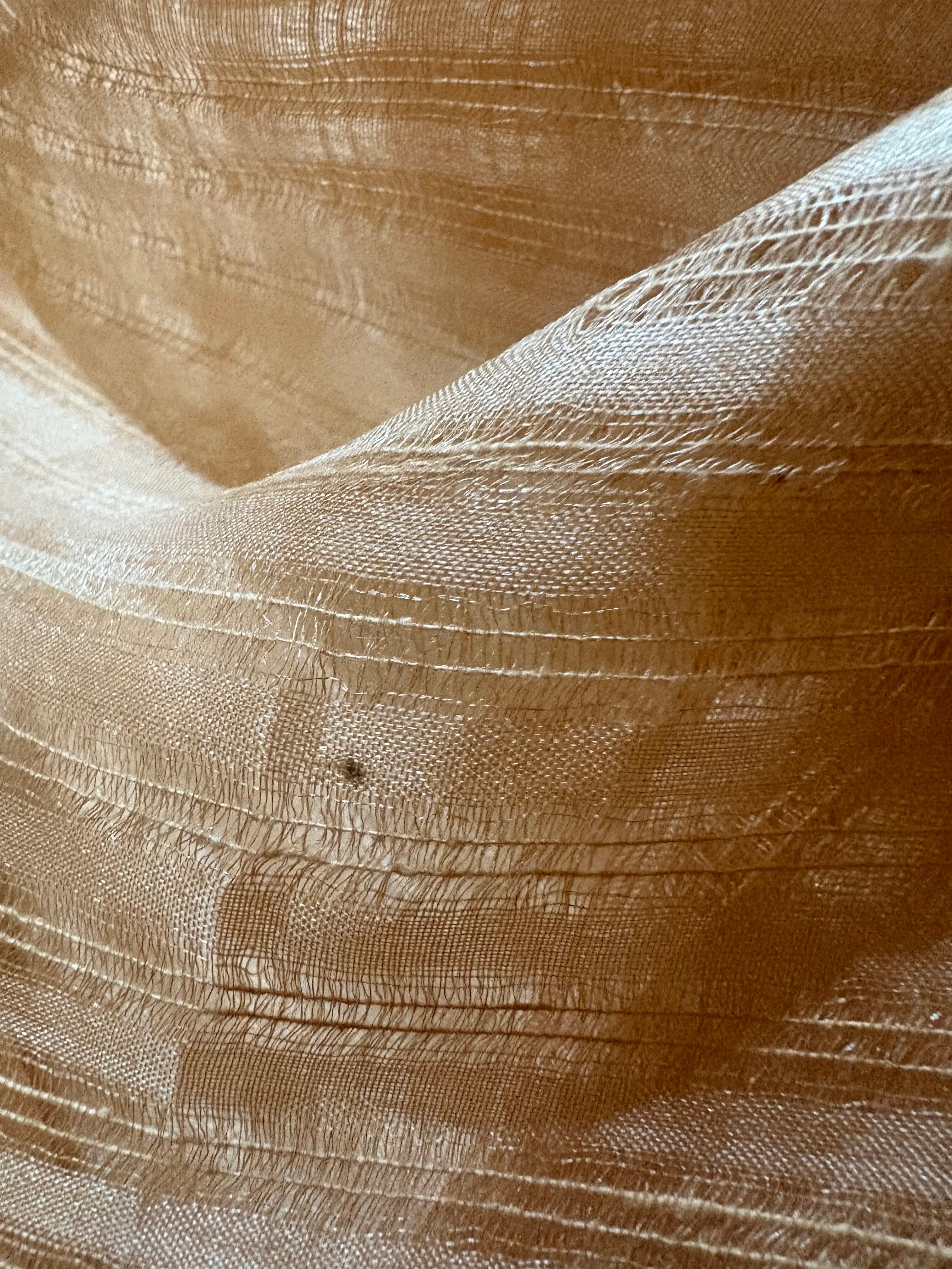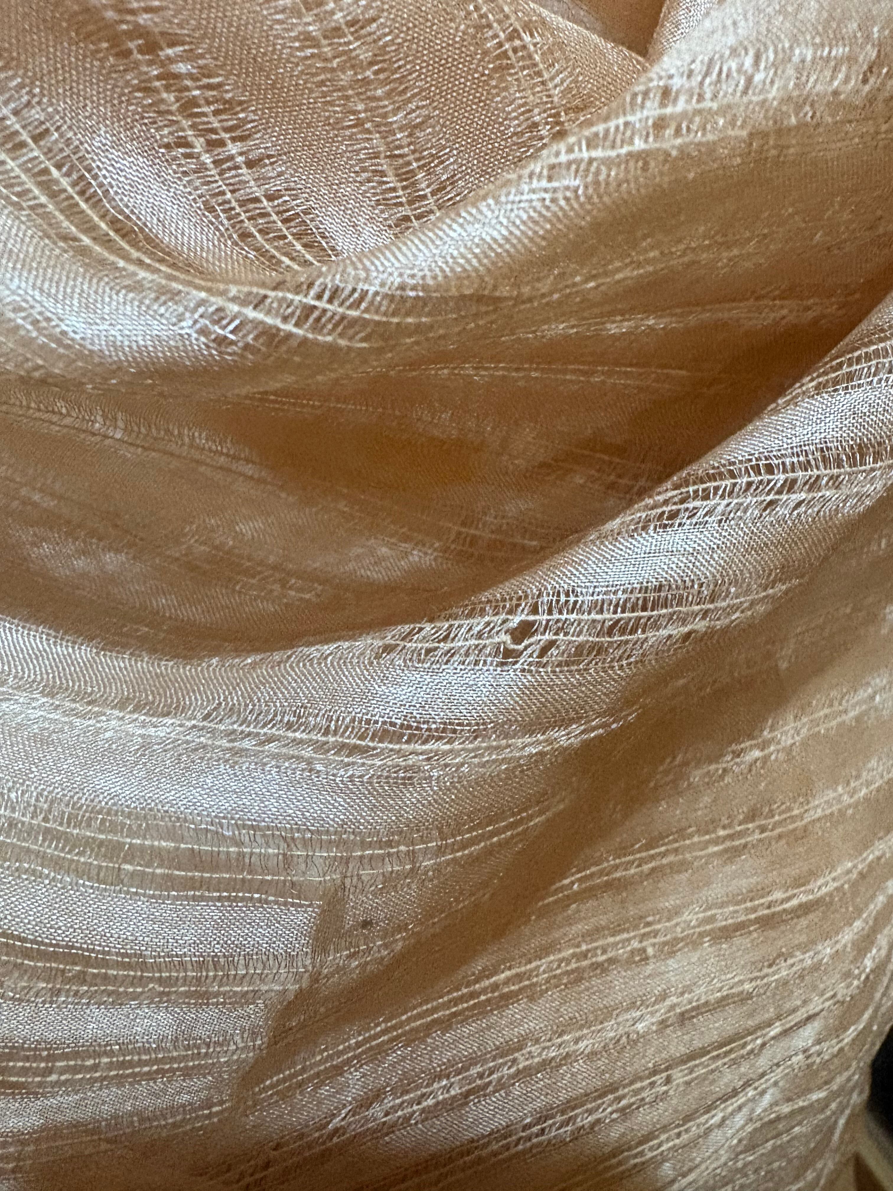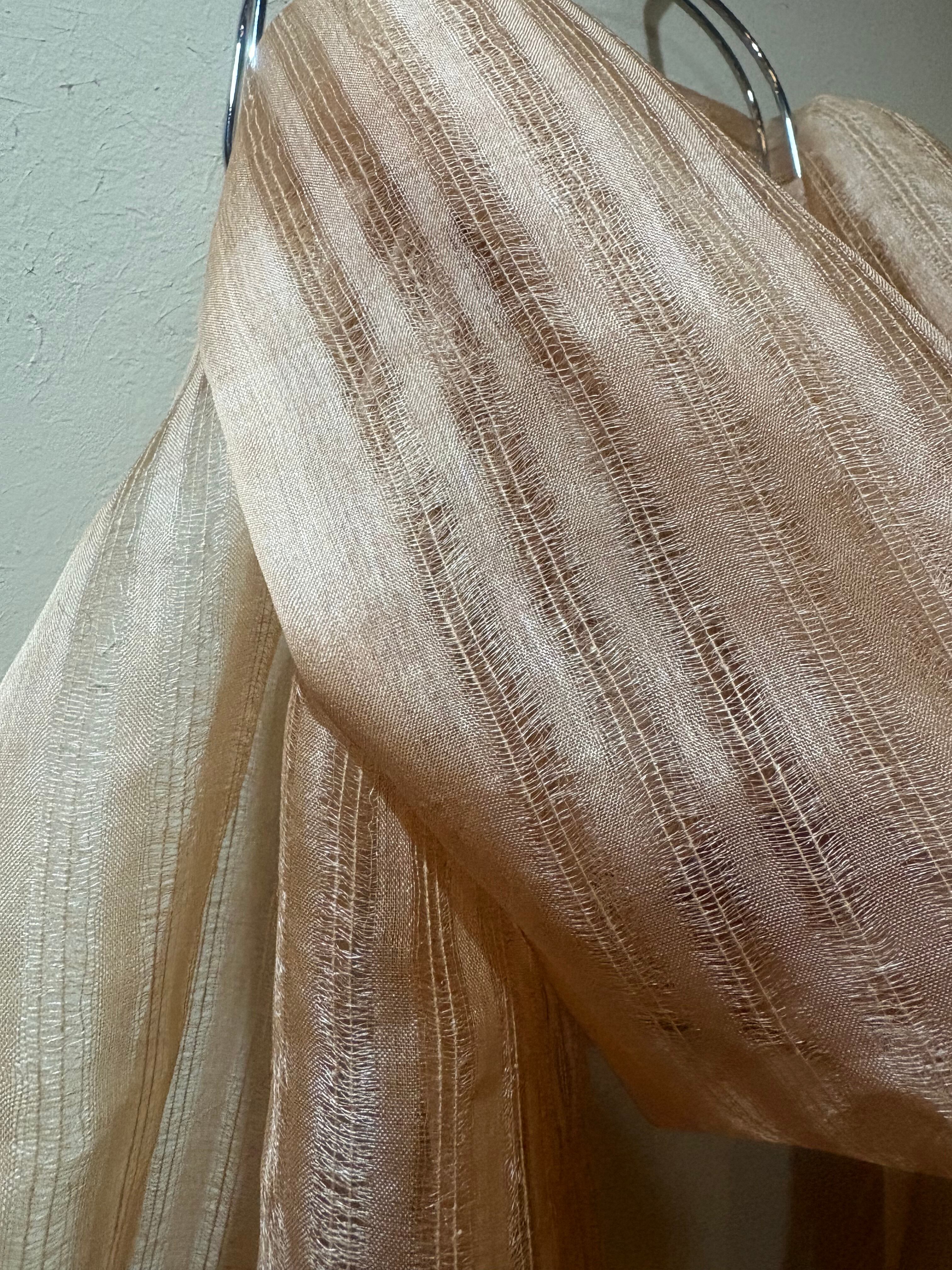 • ワイルドシルクの輝き: 野生蚕ならではの、ダイヤモンドのような気品ある光沢が、オーガンジーの繊細な表情を引き立てます