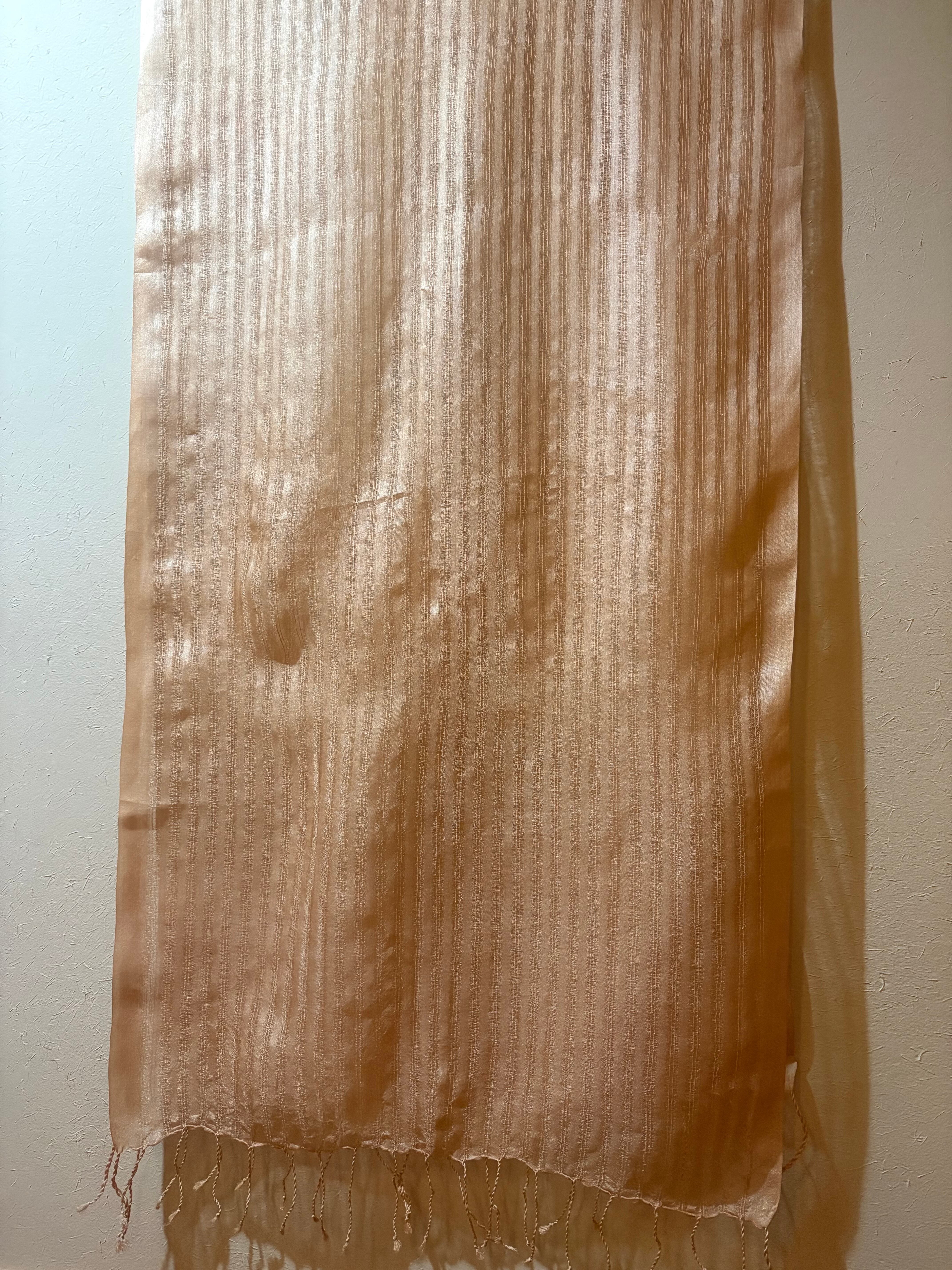 このストールに使用されているのは、インドの豊かな森に生息する野生蚕「タッサー蚕」が紡ぎ出した希少な糸です