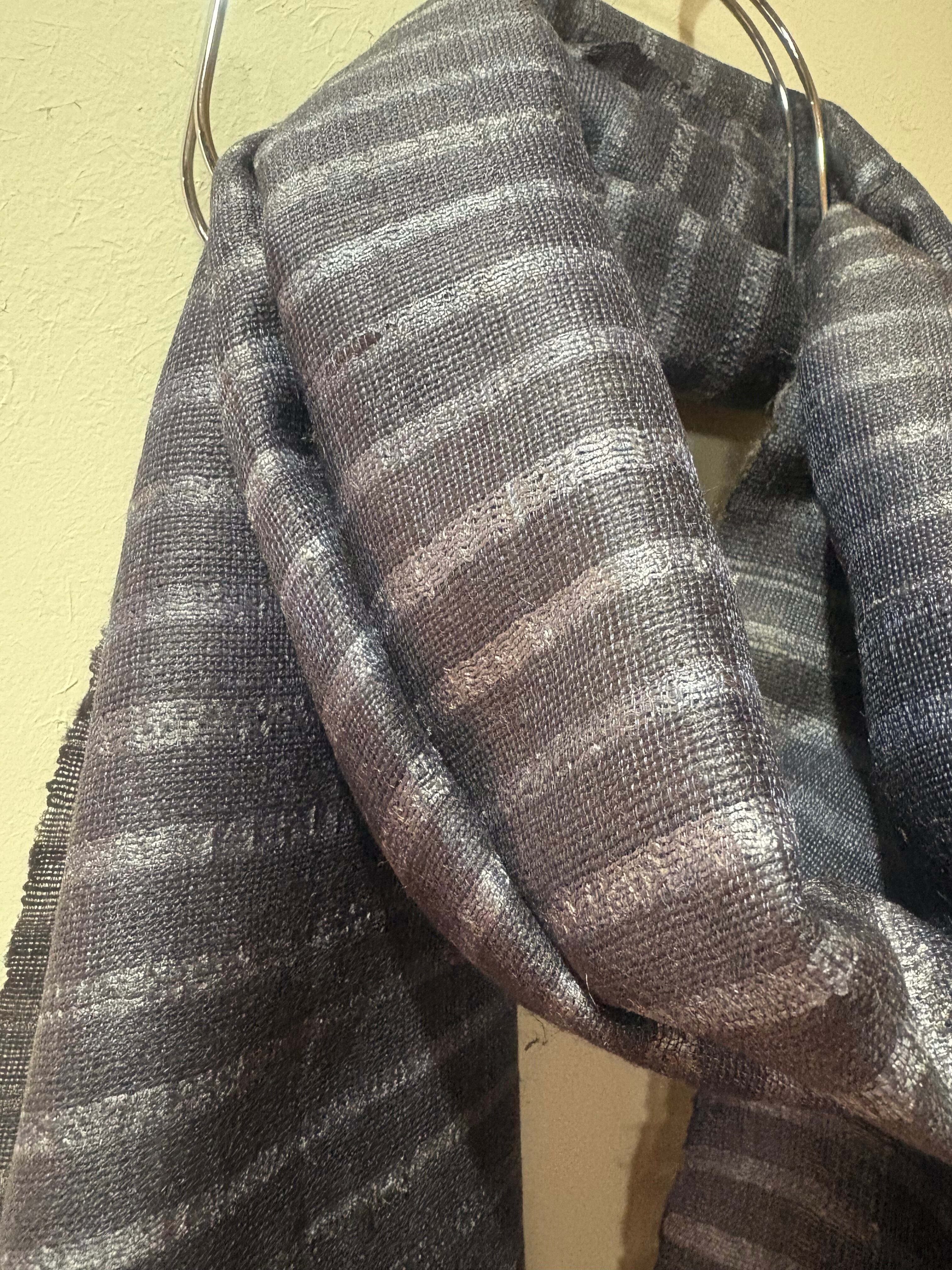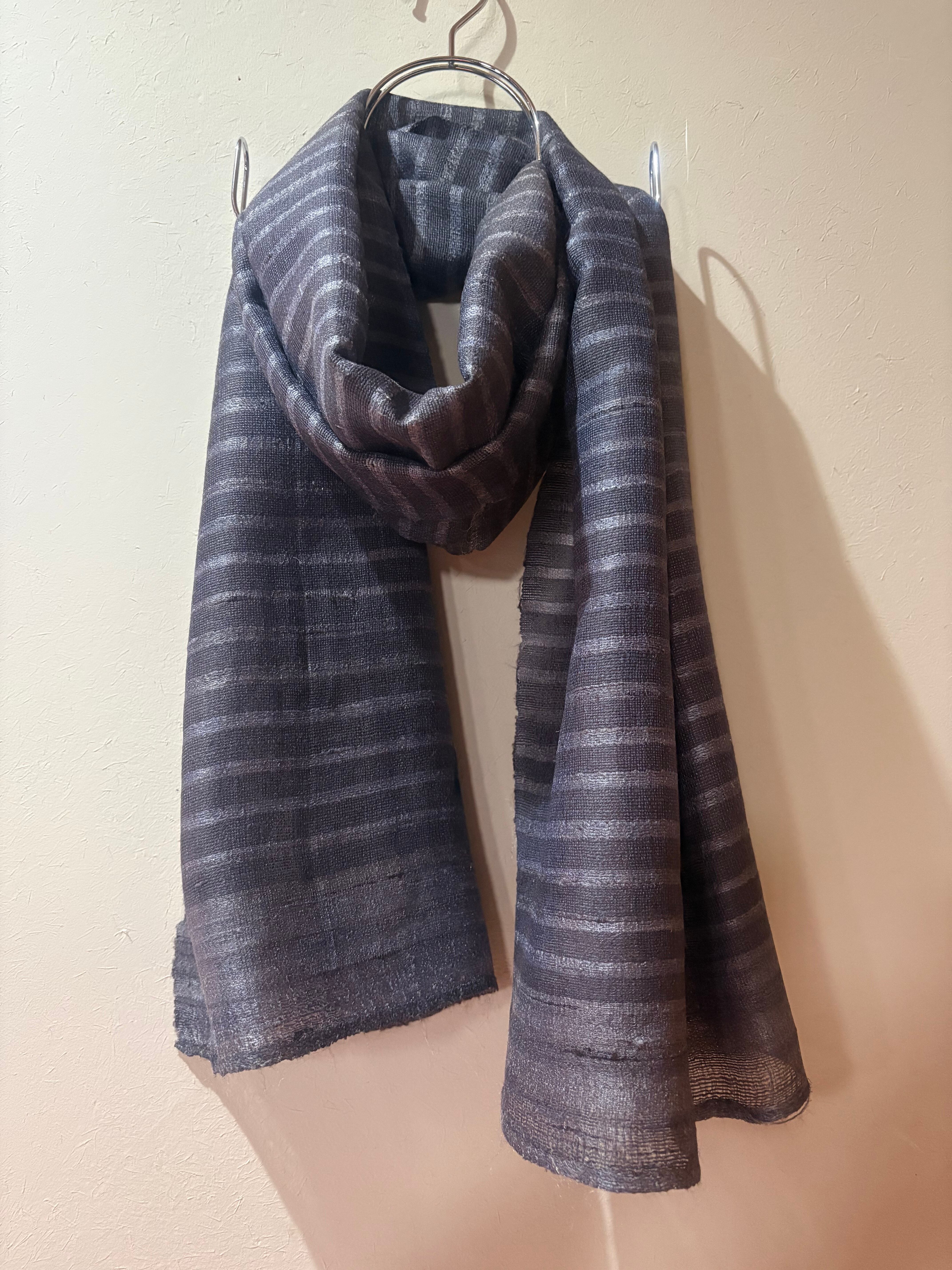 ロッグウッド染 タッサー&ナーシーシルクストール ストライプ 野蚕シルク100%