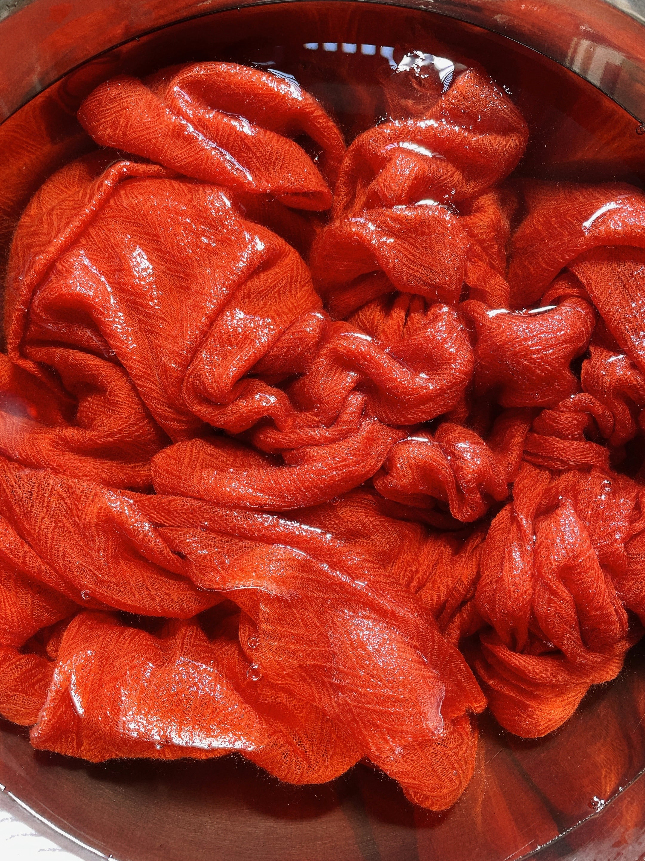 やわらかく上質なウールを、古来より愛されてきた「茜(あかね)」の根で染め上げました